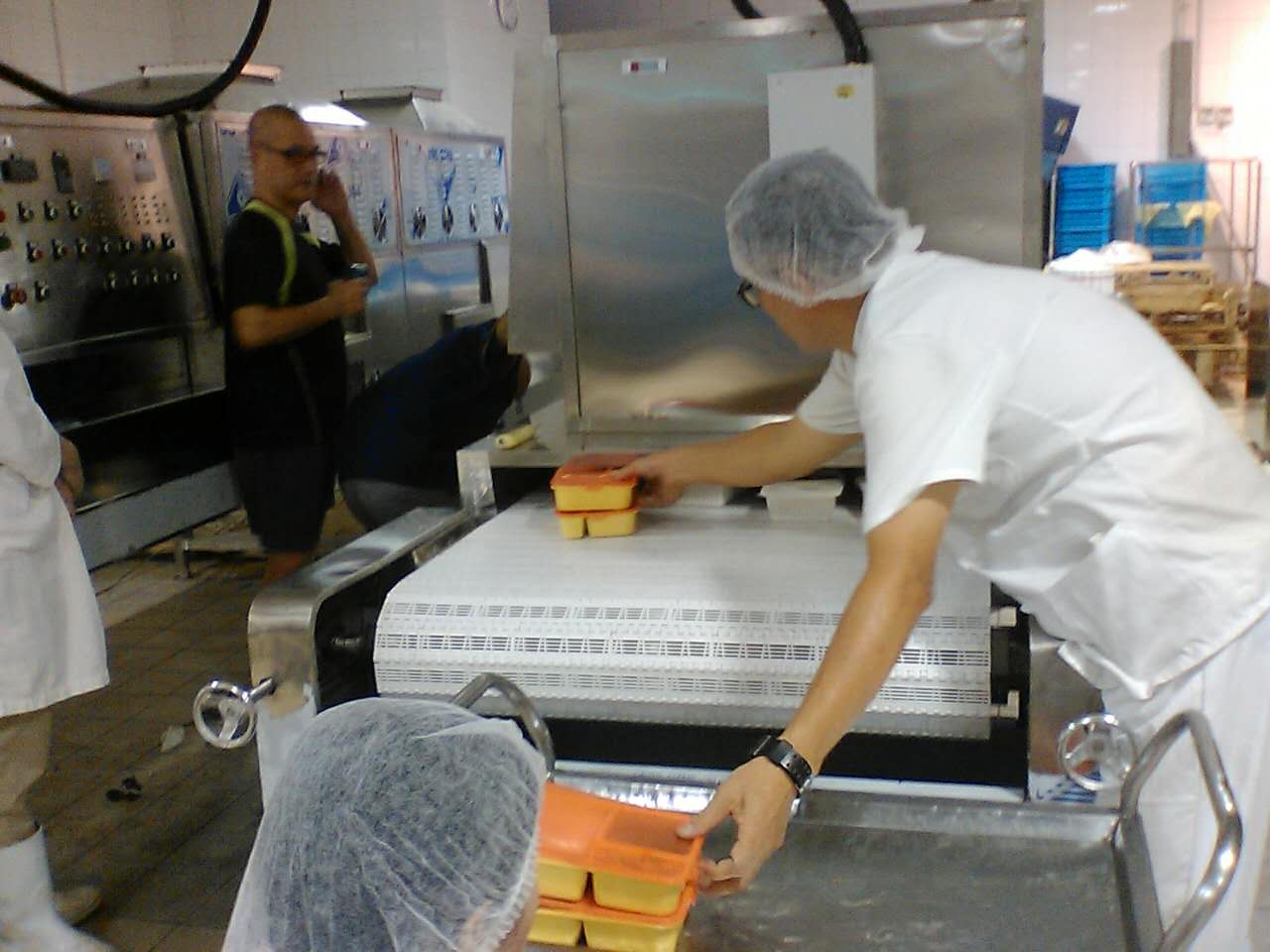 微波盒飯加熱干燥殺菌機能夠透射到生物組織內部使偶極分子和蛋白質的極性側鏈以*的頻率振蕩,引起分子的電磁振蕩等作用,增加分子的運動,導致熱量的產生。微波還能夠對氫鍵、疏水鍵和范德華產生作用,使其重新分配,從而改變蛋白質的構象與活性。生物體的非熱特性一 生物效應是微波的重要特性之一,它已成為醫學、細胞學等方面研究的一個重要方面,同時它也能為微波理療或微波手術等方面提供理論依據 隨著人們對微波加熱技術認識的深入,它已引起了許多科學工作者的關注,并在一些方面進行了深入而廣泛的研究。微波盒飯加熱干燥殺菌機比其它用于輻射加熱的電磁波,如紅外線、遠紅外線等波長更長,因此具有更好的穿透性。微波透入介質時,由于介質損耗引起的介質溫度的升高,使介質材料內部、外部幾乎同時加熱升溫,形成體熱源狀態,大大縮短了常規加熱中的熱傳導時間,且在條件為介質損耗因數與介質溫度呈負相關關系時,物料內外加熱均勻一致。